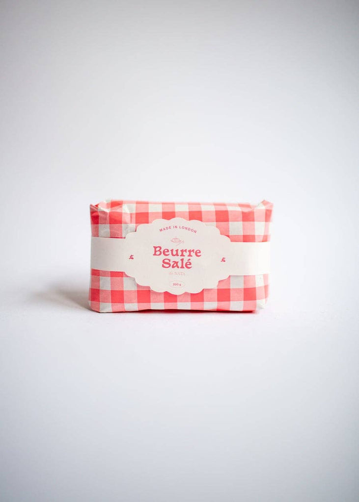 Butter. We all have our own history with it, but no one more than the French. Presented in gingham greaseproof paper 'Beurre Salé' or 'Beurre Doux'.